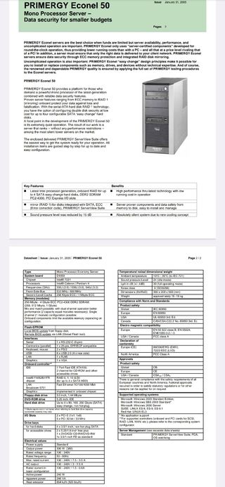 Vendo pc retro marca Fujitsu Siemens Computers modelo Primergy Econel 50 en excelente estado. El pc se puede usar tanto como servidor, como pc sobremesa para algún nostálgico que quiera tener algo retro. Se entrega sin disco duro, pero con 1GB de memoria ram en 2 sticks de 512MB y procesador Pentium 4 a 3.2 GHz. Los demás componentes se pueden ver en las fotos. Torre metálica bastante pesada sin abolladuras, pero con algún roce mínimo por uso. Se entrega en mano por la zona de Benetússer y alrededores, también por la zona del barrio de la Luz en Valencia. Precio 60 euros.