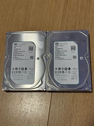 2 unidades Seagate IronWolf Pro de 4TB (Modelo: ST4000NE001). Estos no son discos convencionales, son la gama Enterprise, diseñados específicamente para NAS de alto rendimiento y servidores con carga de trabajo intensiva. - Velocidad de 7200 RPM: Rendimiento muy superior a los discos estándar de 5400 RPM. - Fiabilidad Pro: Sensores de vibración rotacional (RV) y tasa de carga de trabajo de 300 TB anuales. - Estado Real: Solo 13.000 horas de uso (una fracción (2%) de su vida útil). - Salud Perfecta: Verificables con CrystalDiskInfo Trato en mano en Barna o envio con Wallapop.