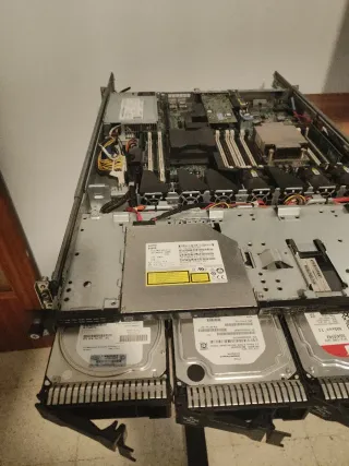 Servidor HP ProLiant DL380 G6 (2U) – 64GB – 2x Xeon – RAID – 2x1200W – SAS – Recogida Servidor rack HP ProLiant DL380 G6 (2U). Funciona. Lo vendo porque no lo uso y ocupa. Datos (según etiqueta y componentes visibles): - 2x Intel Xeon X5560 2.80GHz - 64GB RAM DDR3 - RAID HP Smart Array P410i - 2x fuentes redundantes 1200W - Incluye 1 disco HP SAS 900GB 10K (Dual Port) Muy importante: - Se entrega tal cual en las fotos. - No incluye cables (ni alimentación, ni red, etc.). - Solo recogida en mano. - No hago pruebas ni soporte técnico adicional.