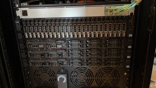 Cluster VMware completo en rack 24U insonorizado. 4 servidores Dell: 3x PowerEdge R620 (hosts) + 1x PowerEdge R720XR (datastore), todos con Intel Xeon E5-2697 v2. Datastore con 24 discos SAS 15K 600GB + NVMe 256GB para flash cache. Red 10Gbps por fibra a switch Ubiquiti USW Aggregation + switch cabecera Ubiquiti 24p + 2 SFP + router Ubiquiti EdgeRouter 4 (balanceo 2 WAN). ventilación automática por temperatura, cableado Cat7, medición de consumo, control de ventiladores. Extras: 4 PSU 750W Dell, 15 discos SAS 600GB, SFP 10Gb. Ideal homelab/empresa.