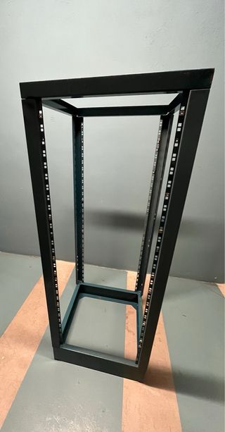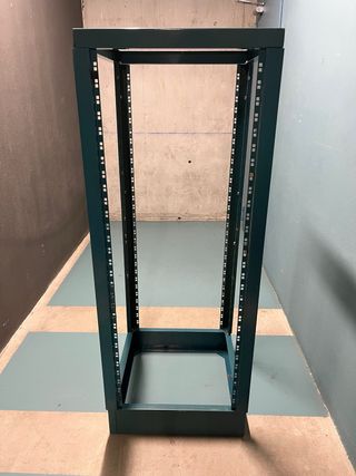 Rack de servidor metálico, ideal para organizar equipos. - Estructura robusta y duradera. - Múltiples niveles para equipamiento. - Diseño abierto para ventilación.