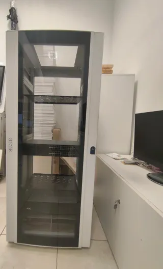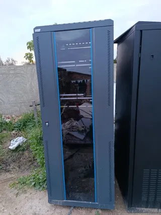 Lote armarios por 500e Armario rack para servidores y equipos de red. Estructura robusta y diseño funcional. - Puertas perforadas para ventilación. - Bandejas ajustables en altura. - Ruedas para fácil movilidad.