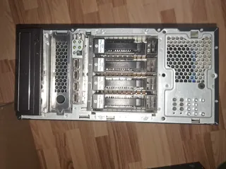Caja tipo torre de ordenador, originalmente de un servidor. Ideal para modding. Lleva placa base que creo funciona y dos unidades letora y grabadora de DVD. Cinco bahías para discos duros grandes pero solo tiene cuatro soportes. Falta uno. - Puerta lateral abatible con cerradura y llave.