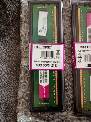 Set de 4 x8 módulos de memoria RAM Kllisre. - Capacidad: 8GB por módulo. - Tipo: DDR4. - Velocidad: 2133MHz. - Formato: PC4-17000R. - Uso: Servidores xeon o placas x99