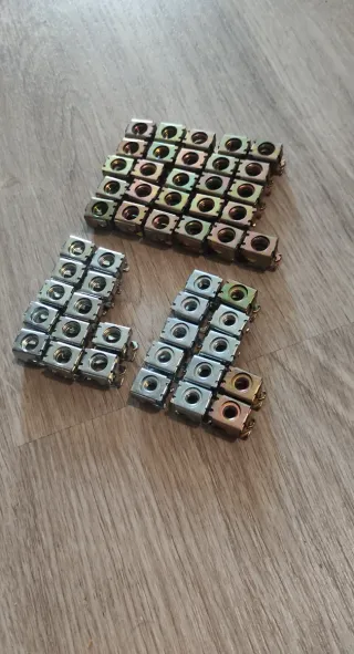 Tuercas enjauladas nuevas de la marca Schneider Electric, modelos NSYCNFM8 con métrica 8 y NSYCNFM6 con métrica 6. Lote compuesto por 12 unidades M6 y 38 unidades M8, ideales para montajes en racks eléctricos, electrónicos, comunicaciones, servidores ... - Material metálico. - Diseño cuadrado con rosca.