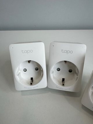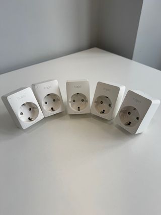 Pack de cinco enchufes inteligentes TP-Link Tapo P100. Permiten controlar tus dispositivos de forma remota. - Control remoto a través de la app Tapo y asistentes de voz. - Programación de horarios. - Diseño compacto. Uno de ellos le suena cono un trocito de plastico dentro, pero funciona perfectamente.