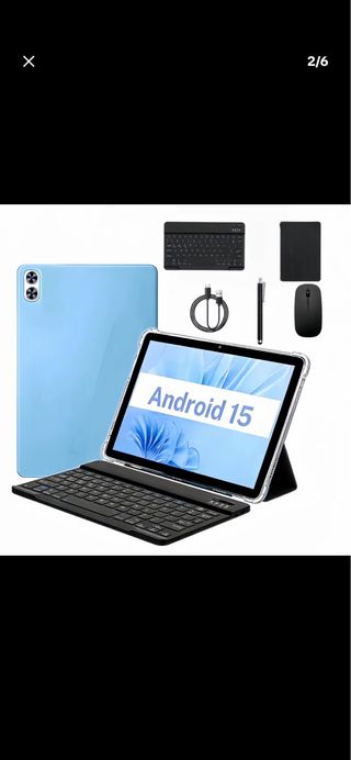 Tablet con pantalla de 10.1 pulgadas y sistema operativo Android. - Incluye teclado, ratón, lápiz y funda. - Diseño moderno y ligero.
