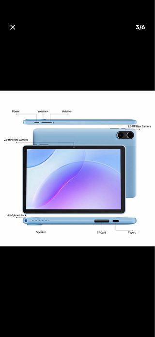 Tablet con pantalla de 10 pulgadas. - Diseño delgado y ligero. - Cámara frontal integrada. - Puerto de carga USB-C. -Lo que se ve en la pantalla eso es un protector se le quita y la tablet esta como nueva