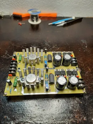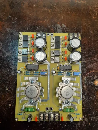 Placa de alimentación con doble circuito. - Entrada 9,5 a 26v y salida 4,5 a 28v sin usar nuevo. Ideal para audio.Estabizada y regulable en salida. - Componentes electrónicos montados. - Disipadores de calor integrados.