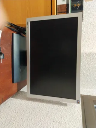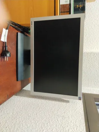 Monitor - Tamaño de pantalla: 21 pulgadas. - Color: Negro -Entrada de vídeo: VGA y DVI (incluido cable de DVI y un adaptador a HDMI) Para instalar directamente a soporte de pared mediante tornillos. Tiré por error el soporte de pie.