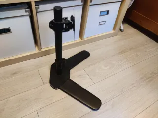 Soporte de mi monitor de 27" No lo uso porque tengo el monitor en un brazo - Base estable con patas. - Ajustable en altura y ángulo. - Mecanismo de montaje VESA.