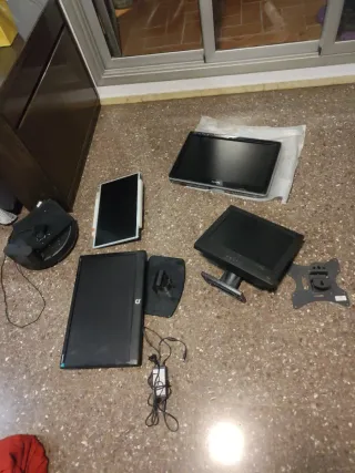 Estoy haciendo limpieza y estás TV aún funcionan y me sabe mal tirarlas, úsalos para las cámaras de seguridad o para uno de tus proyectos, me da igual. Pero no quiero tirarlas Todos juntos, no se separa 2 TV y 2 monitores 1. Monitor Compaq Viejito y recuerdo que tintineaba, muy poco pero como uso de pc para trabajar no va muy bien 2 monitor Lo despiecé e hice un soporte de techo en 3d, funciona y punto, no preguntes 3 TV Philips, Creo recordar que falla el backlight No tengo mando 4 tv pequeña No tengo mando
