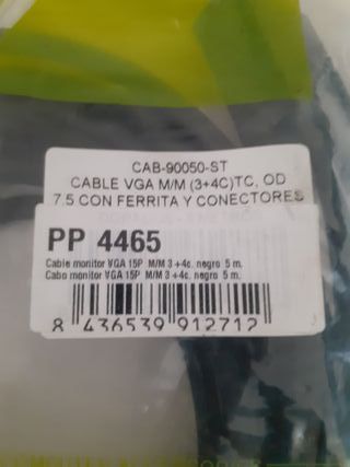 IMPORT. Pepegreen import export S.L.U. PAÍS FABR. PRC MARCA Powergreen powergreen.es MODELO CAB-90050-ST TIPO TECNOL. VGA (Video Graphics Array) Soporta Ultra VGA GÉNERO CONECT. Macho/Macho (3+4C) Tc, Od 7.5 TIPO CONECT. Dorados y blindados de alta calidad № PINES CONECT. 15 MAT. CONDUCT. Cobre de alta calidad MEC. PROT. EMI Ferrita en los extremos Doble apantallamiento de los conductores RESOL. MÁX. 1024×768 COLOR Negro LONG. 5 m PESO 258 g TIPO CERTIF. CE RoHS GARANT. FABR. 100% testado PREFERENCIA Siempre y cuando las circunstancias así lo permitan, el vendedor prefiere la venta presencial al envío