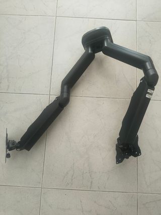 Soporte de monitor Bontec de color negro, en perfecto estado. - Permite una gran flexibilidad de posicionamiento. - Diseño elegante y robusto. - Incluye dos brazos articulados.
