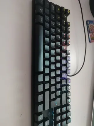 Teclado mecánico Switches Cherry mx rojos. Alguna tecla más floja pero no impide su perfecto funcionamiento. Longitud 100% tags ordenador pc escritorio Logitech razer Nvidia monitor torre ratón fornite placa base portátil Apple MacBook consola ps4 ps5 Windows