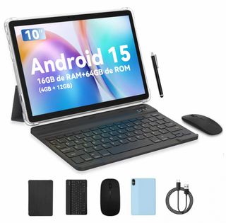 Tablet con pantalla de 10 pulgadas y sistema Android 15. Incluye accesorios para una experiencia completa. SIN ABRIR A ESTRENAR COMPLETAMENTE NUEVO - 16GB de RAM (4GB + 12GB) - 64GB de ROM - Incluye funda, teclado, ratón y lápiz. - Cable de carga USB-C. PRITOM 10,1" Android 15 edición completa: 16 GB RAM + 64 GB ROM + funda con teclado + lápiz táctil + doble cámara 8 MP + batería de 6000 mAh, tableta ideal para estudiantes / uso diario"
