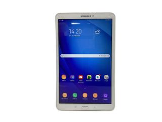 Tablet Samsung de 10 pulgadas. Modelo SM-T535. Color blanco. Solo carga hasta el 65%. Dispone de ranura para tarjeta SIM y poder realizar llamadas desde la tablet. Obsoleta 20 años . 16 GB con posibilidad de introducir tarjeta SD
