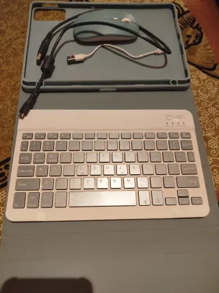 Funda más teclado para tablet Xiaomi Redmi Pad con su cargador. Es de 10 pulgadas. Funciona por bluetooth. Color azul cielo. Sin estrenar. También realizo envíos.