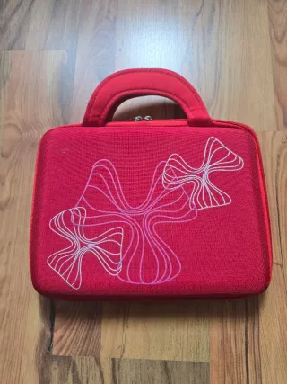 Funda protectora de color rojo para tablets de hasta 10 pulgadas. Presenta un diseño gráfico abstracto en tonos blancos y rosas. - Cierre con cremallera. - Asa superior para facilitar el transporte. - Material textil.