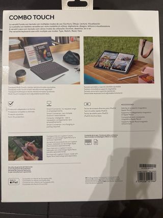 Funda y teclado Combo Touch de Logitech para iPad Air de 13 pulgadas (M2). Permite múltiples modos de uso y cuenta con un trackpad Multi-Touch. - Teclado extraíble. - Trackpad Multi-Touch integrado. - Compatible con iPad Air 13 (M2). Esta nueva, sin abrir la caja y el precio original es de 220€ Modos de uso a elegir: varios modos de uso e infinitas posibilidades, para escribir, dibujar, ver vídeos, leer o participar en videollamadas sin tener que sacar el iPad Pro de la funda con teclado Soporte abatible flexible, teclado extraíble: consigue el ángulo perfecto para cada tarea con el soporte abatible ultrafle