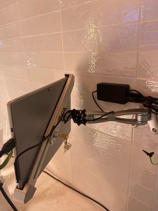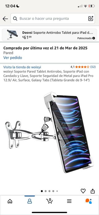 Soporte de pared para tablet con sistema antirrobo y candado. - Fabricado en metal resistente. - Compatible con iPads Pro, Air, Surface y Galaxy Tabs de 9-14 pulgadas.