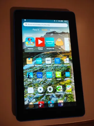 Tablet Amazon Fire en color azul. funciona perfectamente. - Pantalla de 7 pulgadas. - Conectividad Wi-Fi. - Capacidad de almacenamiento de 8 GB.