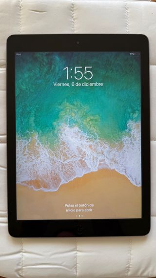 Tablet Apple iPad Air en color plata. - Pantalla de 9.7 pulgadas. - Cámara frontal y trasera. - Botón de inicio. En muy buen estado, FUNCIONA PERFECTAMENTE. SE ENTREGA RESETEADA DE FÁBRICA PARA QUE DISFRUTES DE TU IPAD NUEVO.