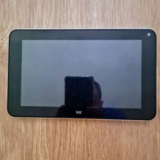 Tablet woxter de 7 pulgadas con funda azul claro, no sé si enciende porque no tiene cargador, si no podría servir para piezas.