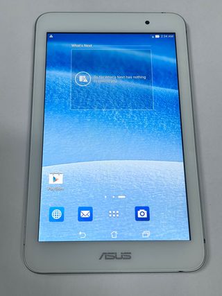 Tablet ASUS en color blanco y plateado. Un dispositivo versátil para tu día a día. - Pantalla de 7 pulgadas. - Diseño delgado y ligero.