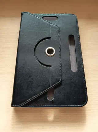 Funda protectora para tablet con acabado en imitación piel. - Funda universal para tablet de 7/8/9/20 pulgadas Xiaomi, Samsung, Honor etc. - Diseño con soporte giratorio de 360 grados. - Cuero vegano color negro y forro gris. - Aberturas para cámara y botones. - Nueva sin uso.