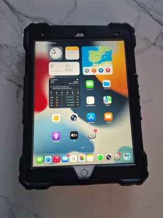 Tablet Apple en color plata, modelo de octava generación. - Pantalla Retina de 10.2 pulgadas. - Chip A12 Bionic. - Cámara trasera de 8 MP y frontal FaceTime HD. - Conectividad Wi-Fi. -Siempre en la funda que lleva por lo que no tiene arañazos ni golpes 32gb de memoria