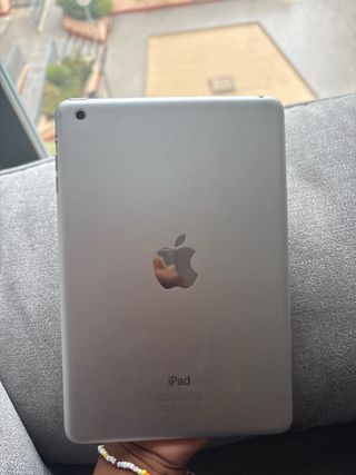 Tablet Apple en color plata, modelo de 5ª generación lanzado en 2017. - Pantalla de 9.7 pulgadas. - Chip A9 con arquitectura de 64 bits. - Cámara trasera de 8 MP y frontal FaceTime HD. - Siempre con funda y cristal templado