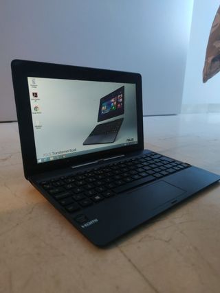 Portátil y tablet 2 en 1 Asus Transformer Book. - Pantalla de 10.1 pulgadas. - Procesador Intel Atom. - 4GB de RAM. - 64GB de almacenamiento. - Windows 10 Home. Funciona perfectamente , pero el táctil a causa de una pequeña fisura hay un parte que no va, por lo demás perfecto y bateria aguanta muchísimo. Cargador no entrego, es de tipo movil usb. Envio y entrega en mano en Bcn Sants.