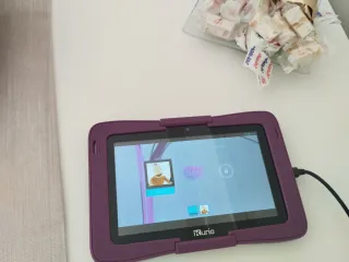 Tablet Kurio Clan en color morado, pensada para los más pequeños. Incluye más de 30 aplicaciones educativas y de entretenimiento. Tablet en perfecto estado. Incluye cargador y funda. Pantalla resistente y apps educativas incluidas. Lista para usar. Entrega en mano. - Pantalla táctil. - Diseño resistente. - Edición Motion exclusiva.