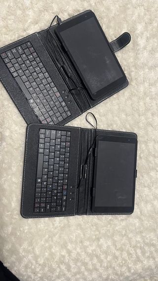 Este set incluye dos tablets con teclado y funda protectora. - Funda con acabado texturizado. - Teclado integrado en la funda. SE VENDEN LAS DOS JUNTAS