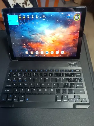 Tablet Android en color azul, ideal para el día a día. Incluye accesorios para mayor versatilidad. - Funda protectora azul. - Teclado compacto. - Ratón inalámbrico. 128GB de memoria