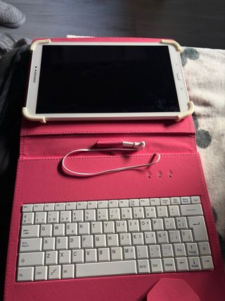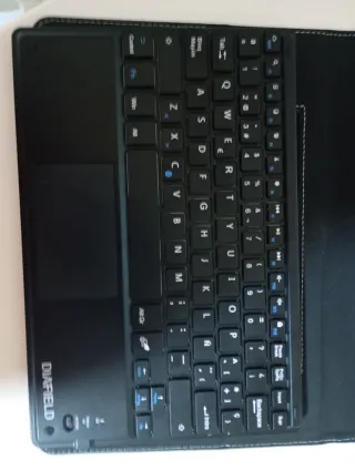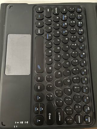 .vendo Funda protectora con teclado integrado para tablet. Diseño elegante en color negro. - Teclado QWERTY vía bluetooth - Material exterior resistente. - Cierre seguro entrego en mano en mí localidad no me desplazo o envío por wallapop