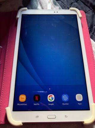 Tablet Samsung Galaxy en color blanco. - Pantalla de 10.1 pulgadas. - con cámara trasera y delantera - se entrega con teclado y cargadores y adaptadores y con la funda.