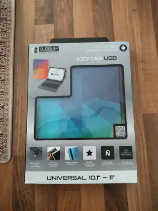 Funda con teclado USB para tablets de 10 a 11 pulgadas. Compatible con Android. - Incluye adaptador Micro USB / Type C. - Sistema de sujeción segura para la tablet. - Cierre con banda elástica. - Diseño exclusivo Sublim. - Teclado en español. - Teclas de alta precisión.