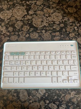 Teclado Inalámbrico con Multi-Touch Pad para Tablets** - **Conexión**: Vía Bluetooth, fácil y rápida. Tiene puerto de carga micro USB, que se utiliza solo para cargar la batería del teclado, no para conectarlo al dispositivo como si fuera por cable o con un receptor USB. - **Incluye**: Ratón integrado en el multi-touch pad. - **Compatibilidad**: Perfecto para tablets. - **Estado**: Nunca se ha usado, viene con funda protectora. Ideal para trabajar cómodamente desde tu tablet. ¡Como nuevo!Precio en tienda: 40 euros.¡Aprovecha esta oportunidad y consigue un teclado como nuevo a un mejor precio!