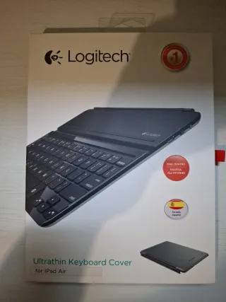Funda con teclado Logitech Ultrathin para iPad Air. Protege tu dispositivo con estilo. - Diseño ultradelgado. - Teclado integrado. - Compatible con iPad Air (a lo mejor tambiem con el Ipad Air 2... pero no estoy seguro) - se ajusta al ipad con un banda imantada - poco usado pero sin señales - batería funcionando perfectamente