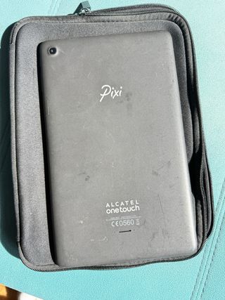 Alcatel pixi. Con funda negra y funda dura azul con teclado.