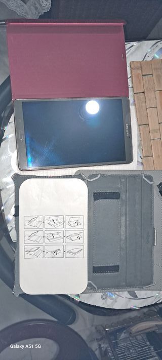 Tablet Samsung Galaxy Tab S en color marrón, con funda-teclado. Se compro en Media Mark y se uso menos de un año. Se da con teclado, funda aparte y la funda roja que se ve tambien, todo 60. Reseteadas a configuracion de fabrica.Tengo otro anuncio de TAB 4 por 20 euros si quereis lote. - Funda con teclado integrado. - Conexión USB para el teclado.