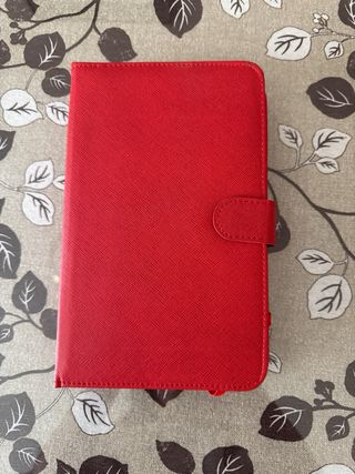 Funda protectora para tablet con diseño elegante en color rojo. - Incluye soporte integrado. - Cierre de botón a presión.