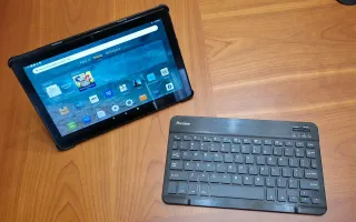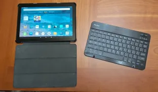 Teclado con funda para tablet de 7 pulgadas. Está en buen estado y incluye un cable USB-C y Micro USB - Diseño compacto y ligero. - Compatible con tablets de 7 pulgadas. - Incluye cable USB-C y Micro USB para conectar el teclado a la tablet. - Funda protectora incluida.