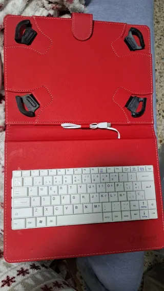 Teclado con funda para tablet, color rojo. Está en buen estado. Precio negociable cualquier duda preguntar sin compromiso. - Incluye funda protectora y teclado. - Diseño compacto y ligero. - Perfecto para usar con tablets.