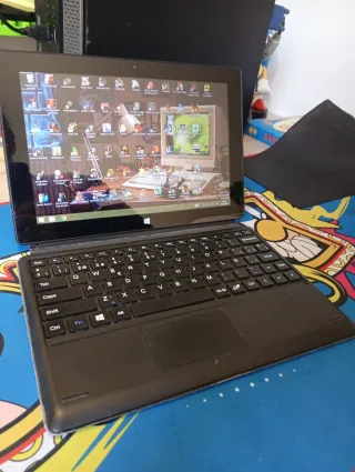 Versátil dispositivo 2 en 1 que funciona como tablet y portátil. - Pantalla táctil (con protector de pantalla) - Teclado desmontable. - Prácticamente nuevo. - Cargador incluido ( cable con un empalme, pero funciona) - Ratón Logitech inalámbrico de regalo. - Dual boot, pero solo funciona por Windows, el Android no logré habilitar. *** El teclado tiene un roce cerca del puerto USB. Si puede ver en las fotos. *** Para cualquier duda llámame. *** La configuración está en las fotos.