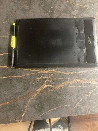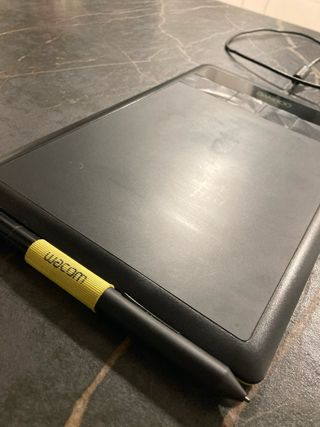 Tableta gráfica Wacom en color negro, ideal para diseño y dibujo digital. Incluye su lápiz - funciona perfecta tiene un mini arañazo, asi imperceptible ver segunda foto - Diseño elegante y funcional. - Superficie de dibujo texturizada. - Lápiz ergonómico.