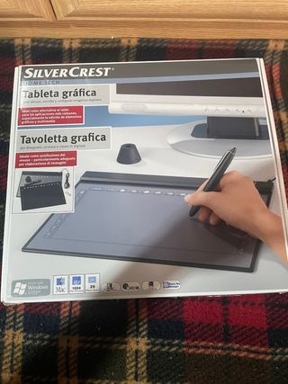 Tableta gráfica Silver Crest Home Tech. - Ideal como alternativa al ratón para dibujar, escribir y configurar imágenes digitales. - Especialmente útil para la edición de elementos gráficos y multimedia. - Compatible con Windows y Mac. - 1024 niveles de presión. - 29 teclas macro. -Nunca se a ultizado