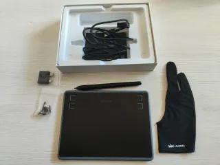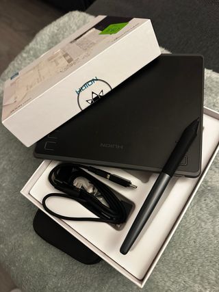 Tableta gráfica Huion HS64 en color negro. Incluye lápiz y cables. Sin usar, esta nueva. - Diseño compacto y elegante. - Superficie de dibujo. - Lápiz sensible a la presión. - Conexión USB.